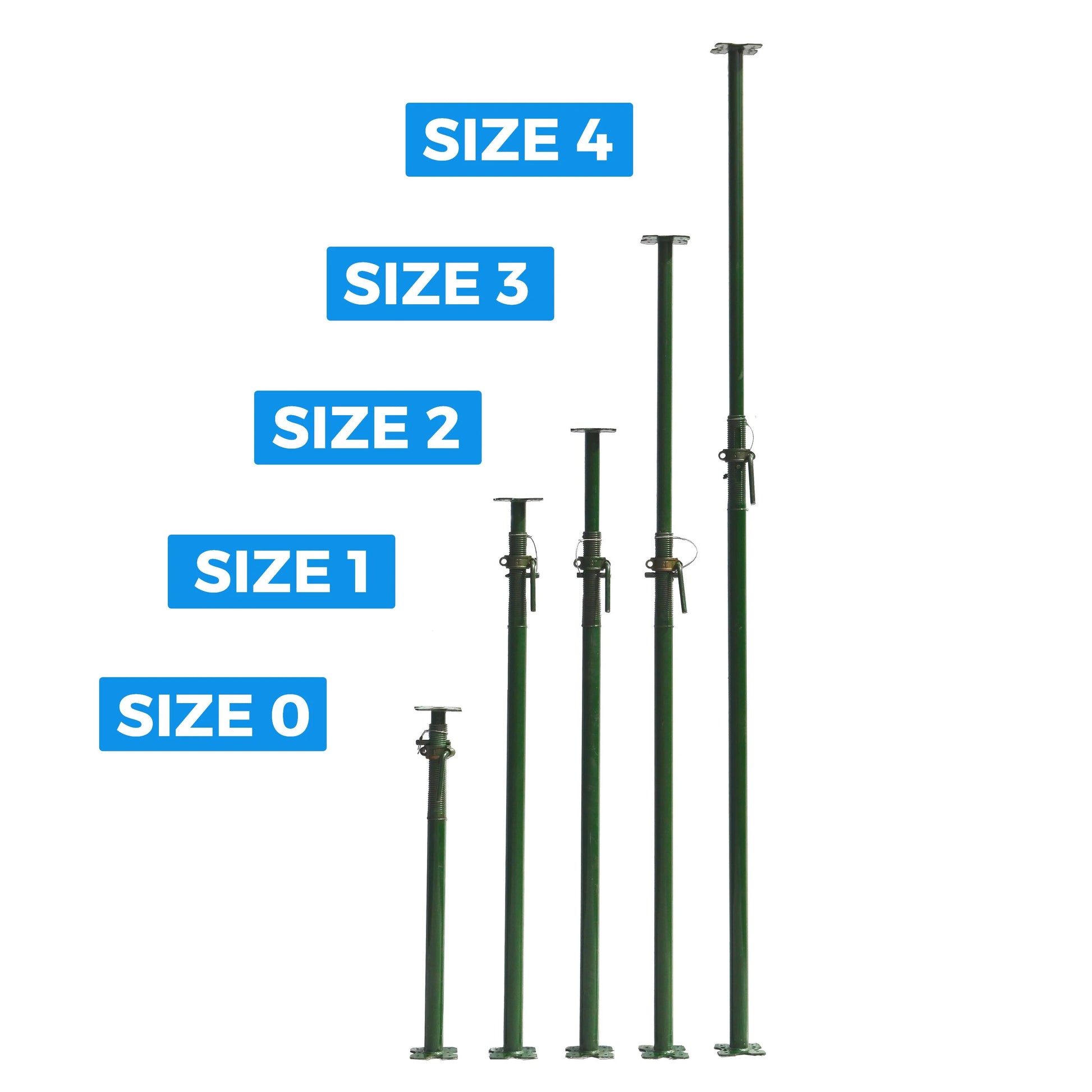Our Acrow Props are manufactured from heavy-duty adjustable steel and are painted with a green powder coat that protects against the elements, rusting, corrosion, and general wear and tear.